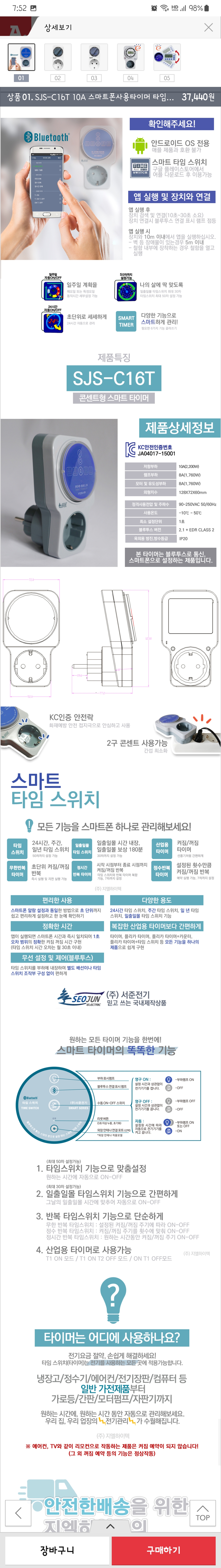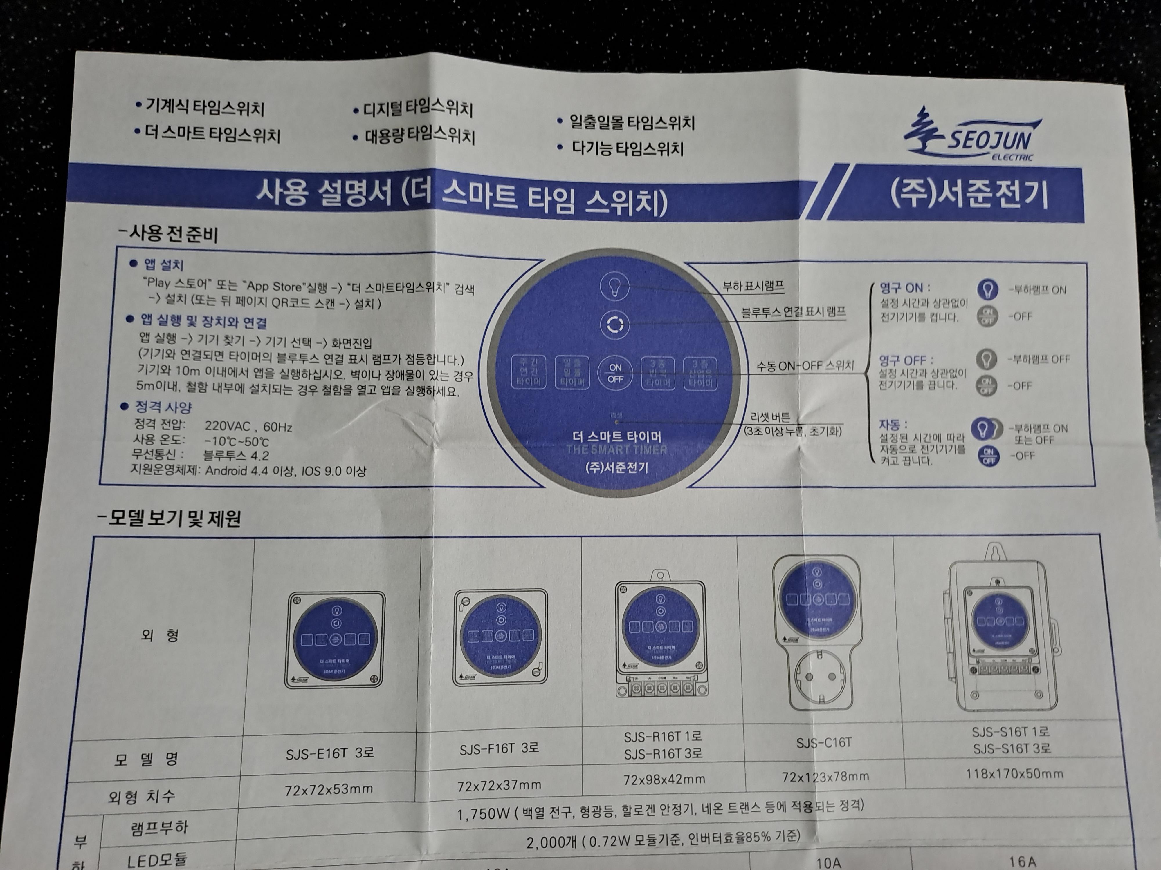 서준전기 더 스마트타임스위치 10A 콘센트형타이머 SJS-C16T 블루투스지원
